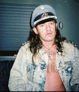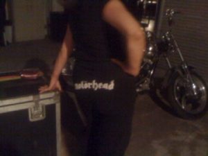 Meanwhile, I was struggling with my aging, changing body as well. I couldn’t find anything to wear that pleased me, I gave up and just wore a plain T shirt with some stylish trackies. I had stenciled Motorhead on the rear of them. When Todd Singerman, their manager, saw them he asked where I got them. I told him I’d made them myself. “That’s a great idea” he said. “They could be marketed” he continued. I told him I had the same thought.